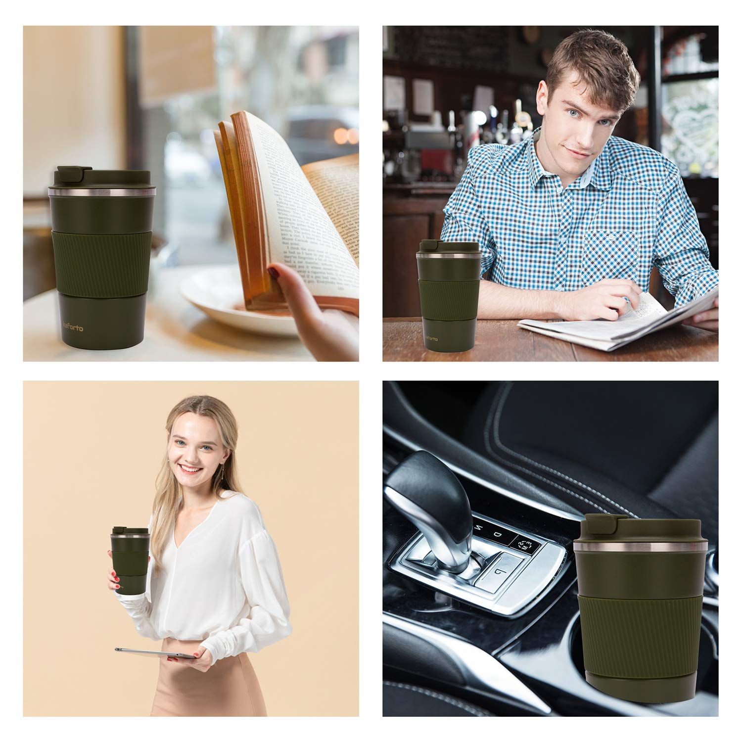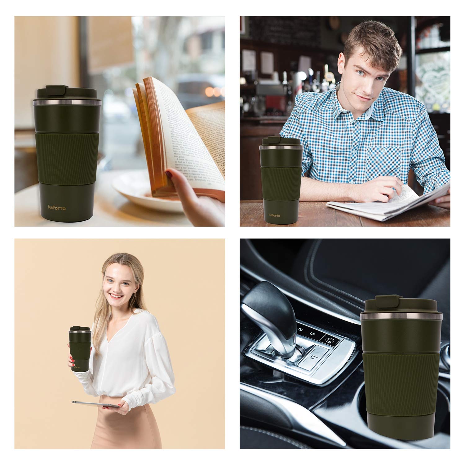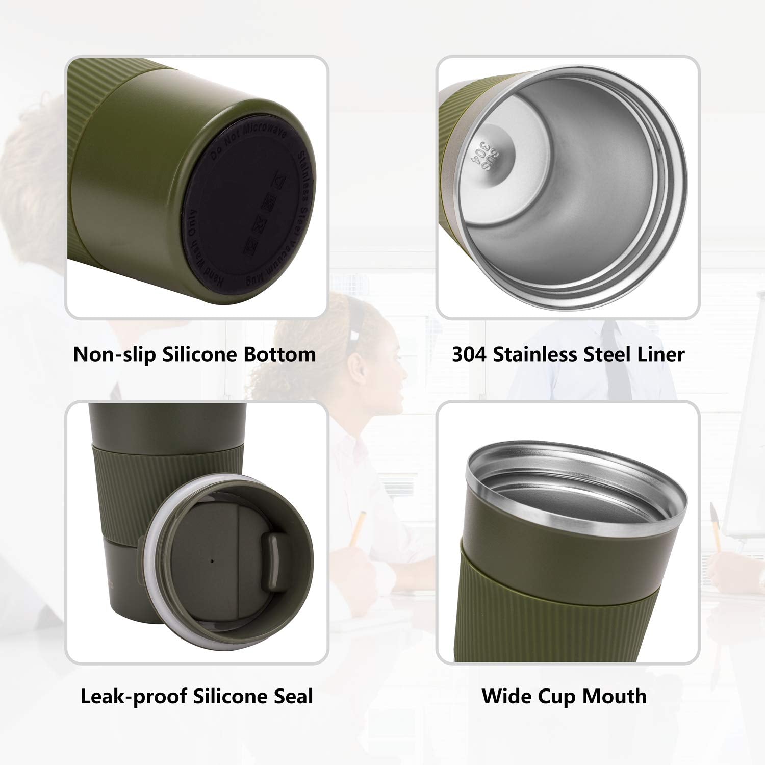- 【Keep Your Coffee Hot and Cold for Hours】 Vacuum insluated coffee travel mug for maximum temperature tetention, hot drinks keep warm for up to 6 hours and cold drinks stay cold for up to 8 hours,and feel energized for the day.