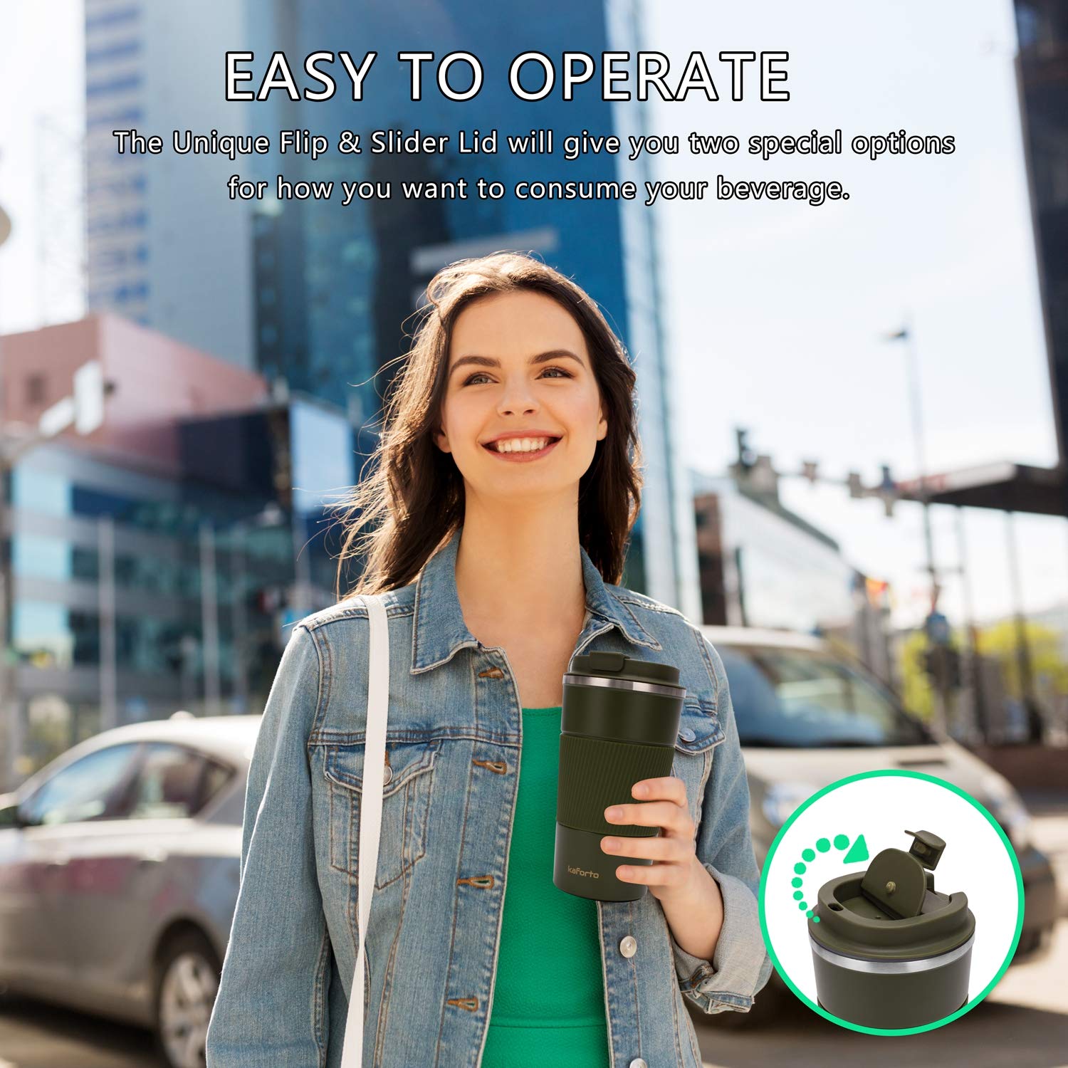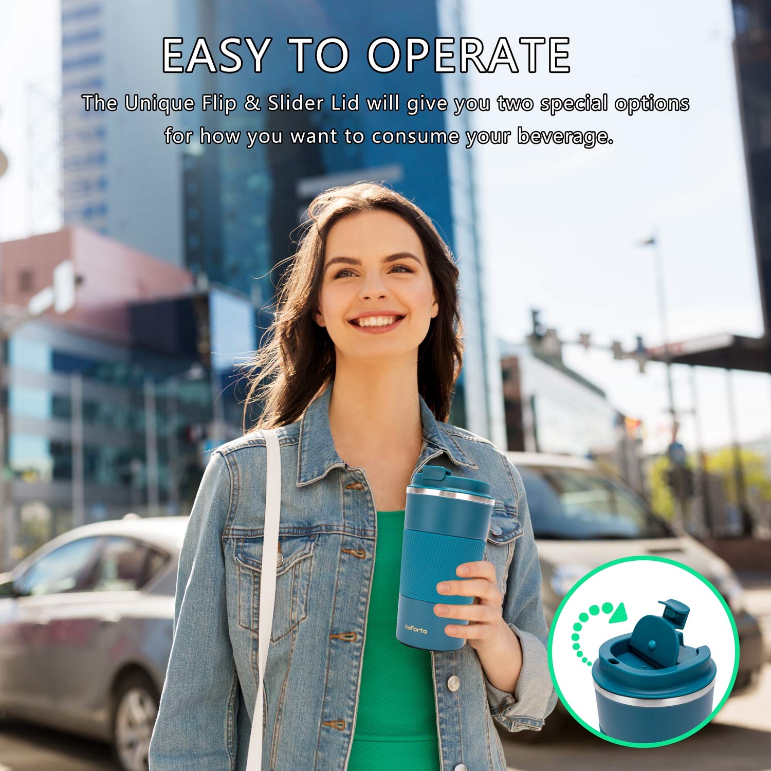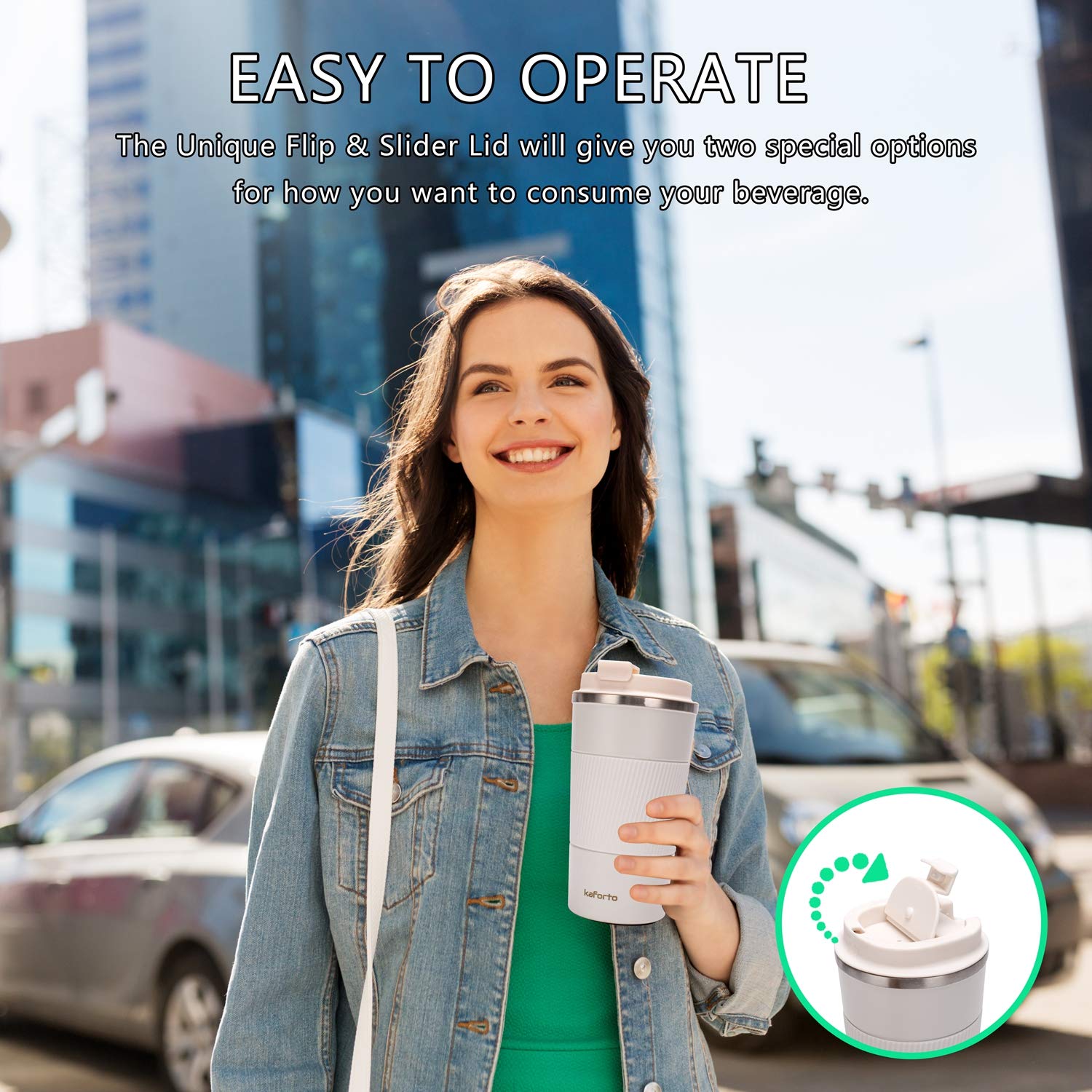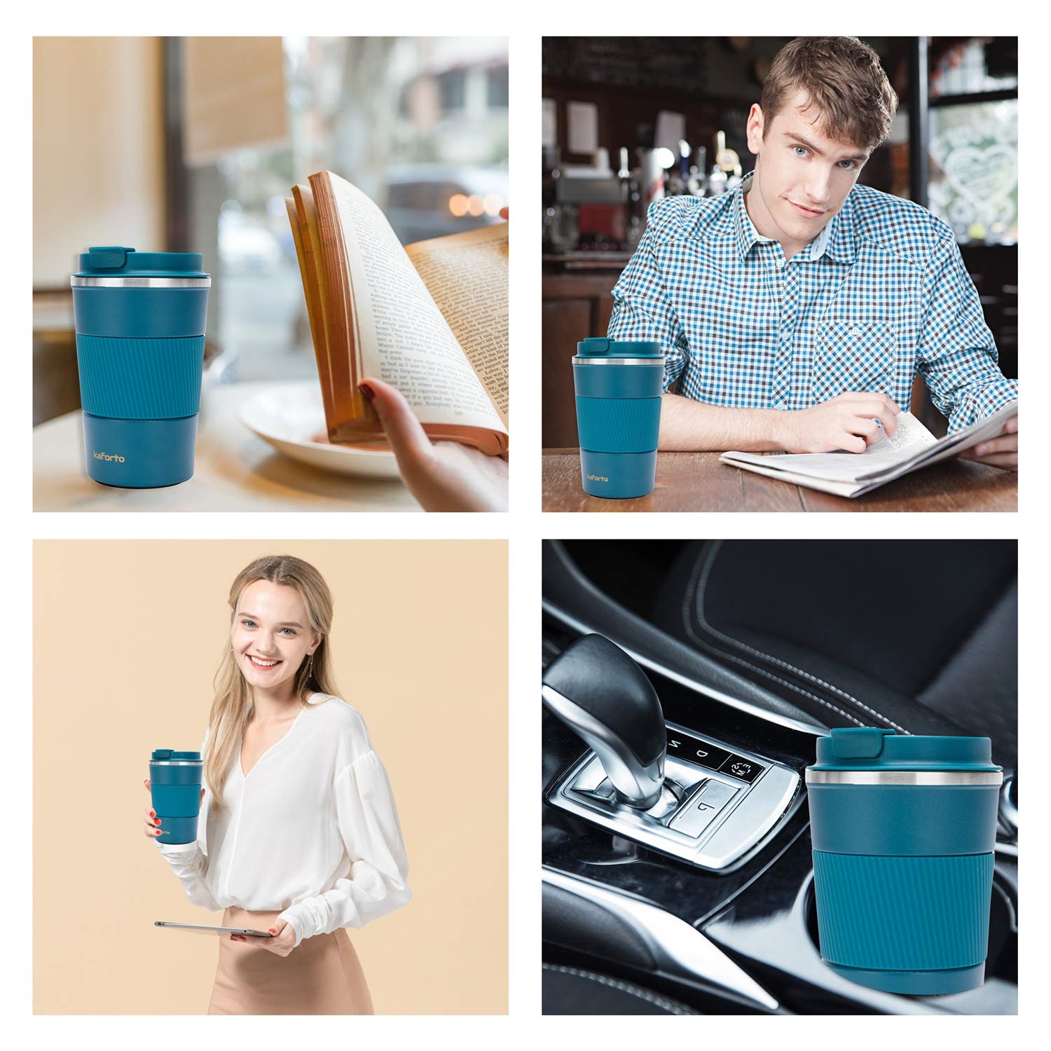 - 【Keep Your Coffee Hot and Cold for Hours】 Vacuum insluated coffee travel mug for maximum temperature tetention, hot drinks keep warm for up to 6 hours and cold drinks stay cold for up to 8 hours,and feel energized for the day.