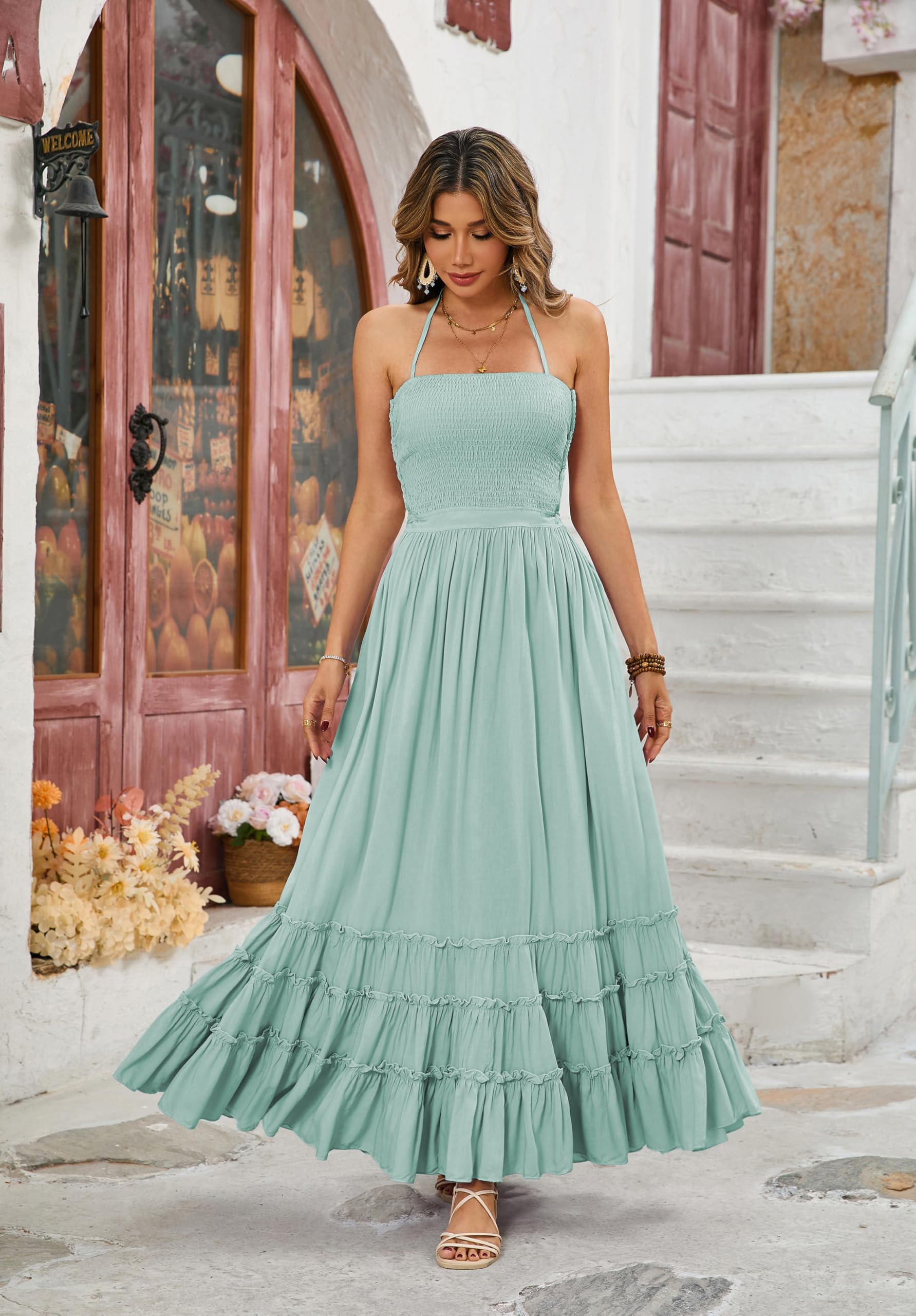 R.Vivimos Sleeveless Halter Flowy Dresses for Women