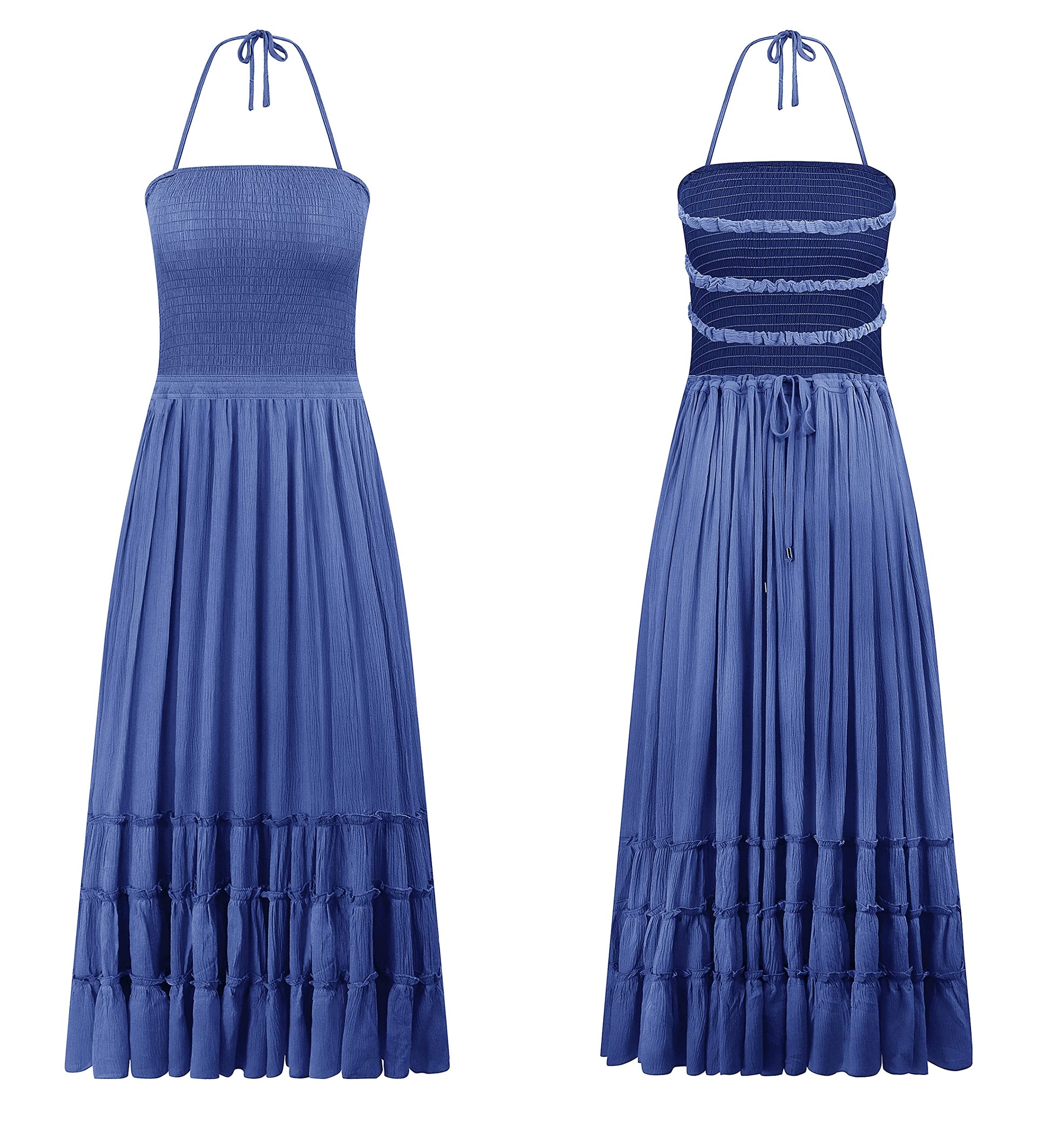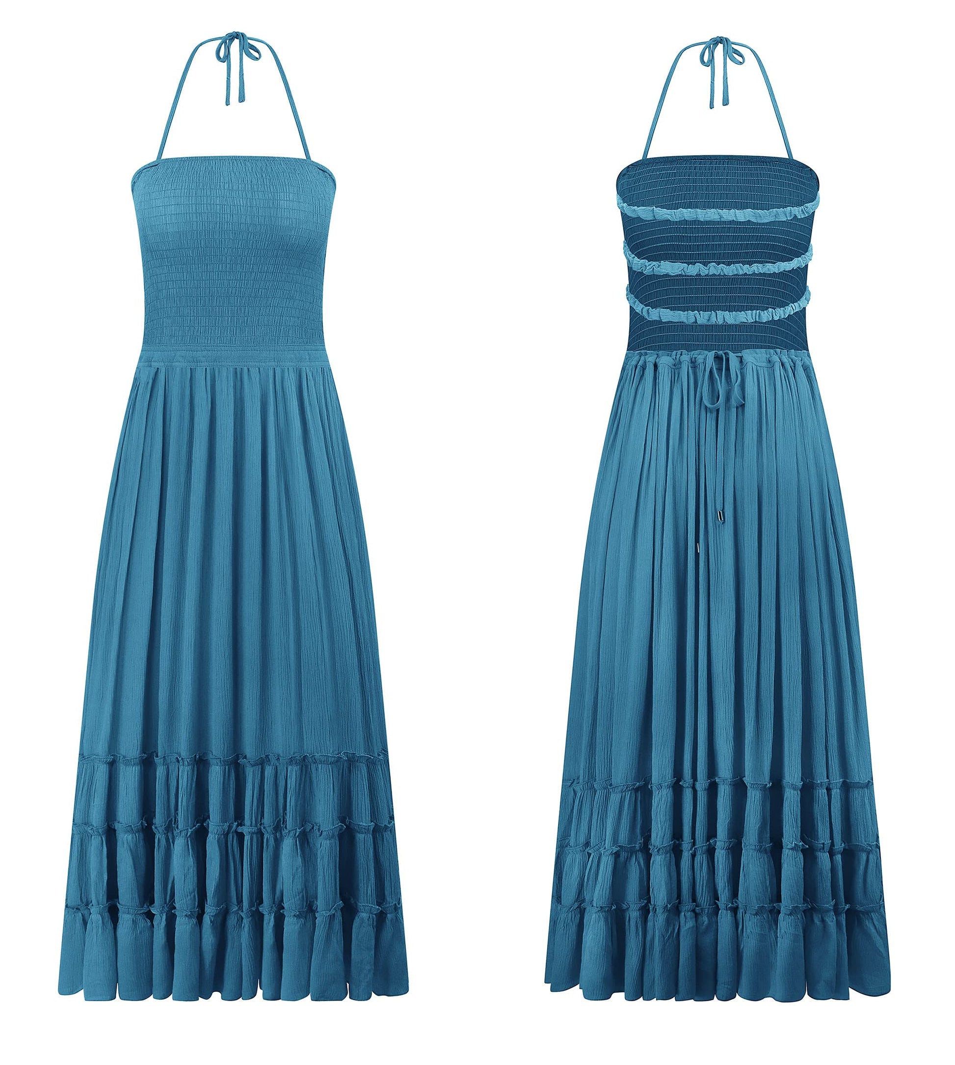 - Adjustable tie at the halter and back waist make this dress easy fit and easy to throw on;