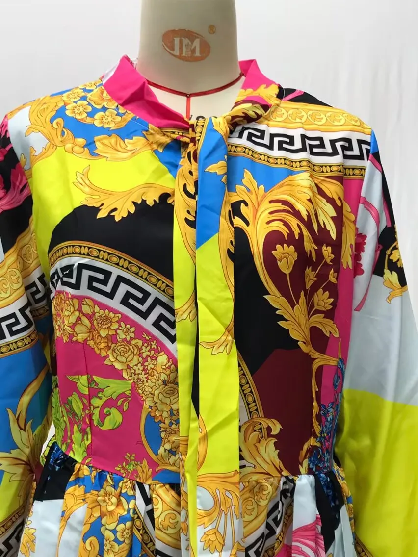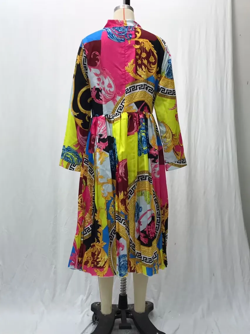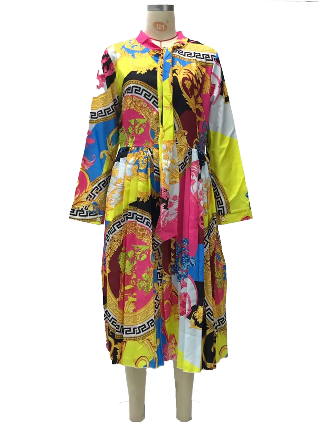 Spring/Summer 2025 vestidos para mujer Long Sleeve Print Dresses elegant Loose Big Swing Robe long dresses ropa de mujer